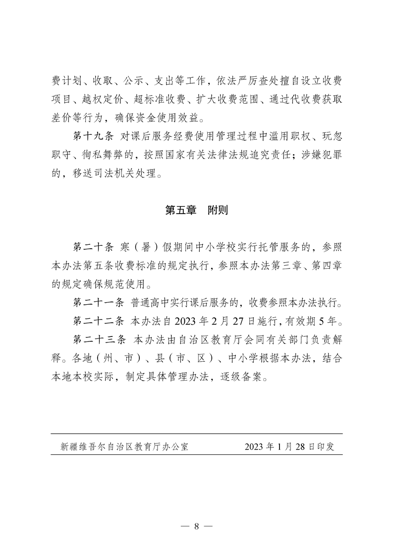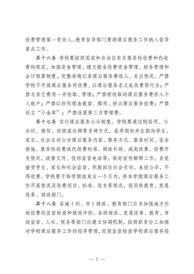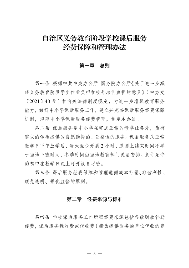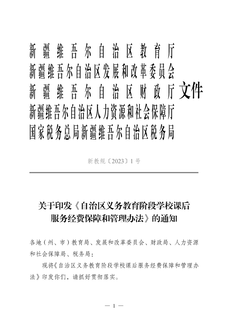关于印发《自治区义务教育阶段学校课后服务经费保障和管理办法》的通知(新教规〔2023〕1号 )