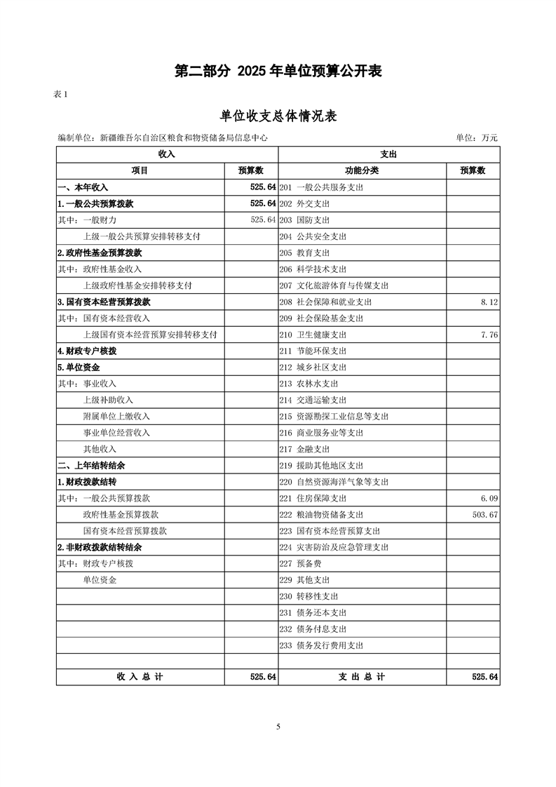 新疆维吾尔自治区粮食和物资储备局信息中心2025年单位预算公开报告