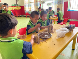 通过播放《食物从哪里来的》动画视频,让小朋友们初步了解粮食的由来,带领小朋友们朗诵古诗《悯农》体会农民伯伯劳作的艰辛与粮食的来之不易。为了真实体验粮食种植,开展“珍惜每一粒粮食”种植活动,小朋友捧着一颗颗麦种,小心翼翼地种在土壤里,每天认真浇水,企盼长出一颗颗果实。种植活动让小朋友体验农民伯伯劳动的艰辛,知道每一粒粮食都凝聚着农民伯伯的汗水和心血,也懂得粒粒皆辛苦的道理,孩子幼小的心中埋下爱惜粮食的种子。