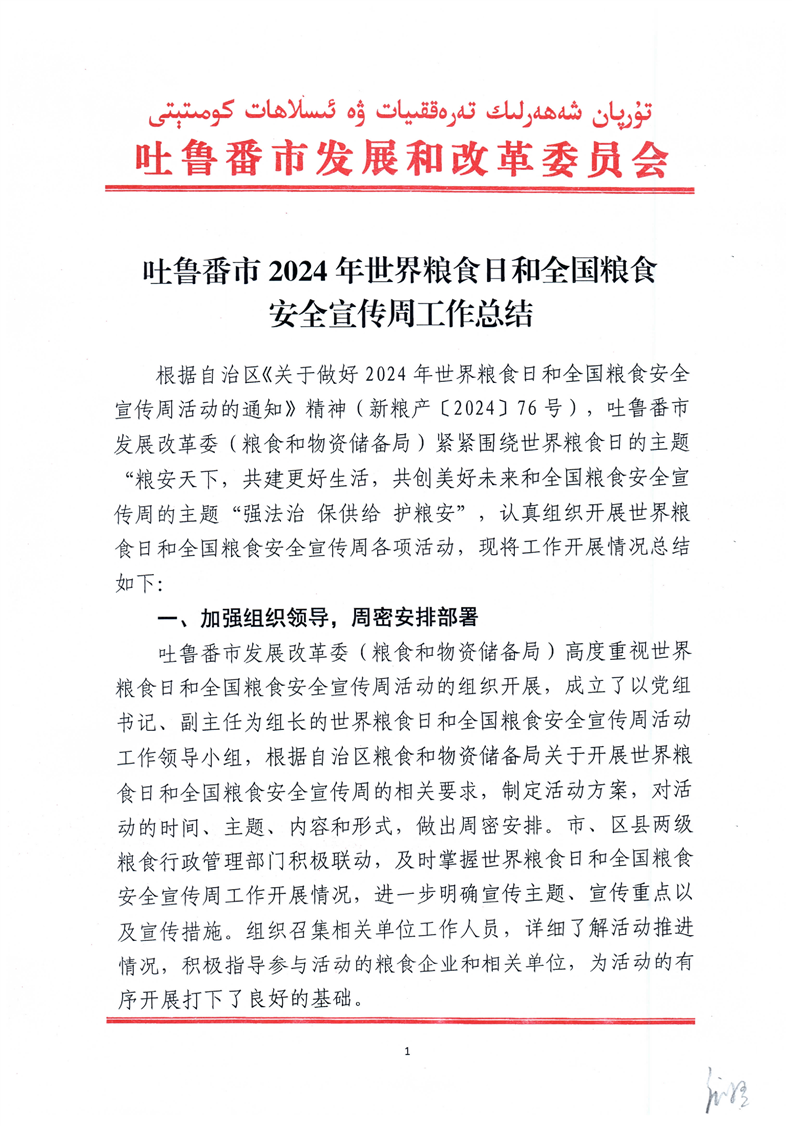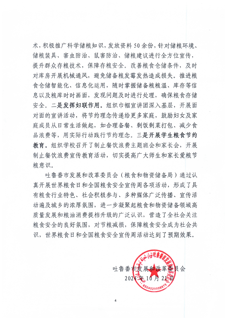吐鲁番市2024年世界粮食日和全国粮食安全宣传周活动总结