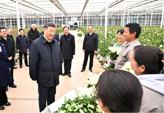 3月19日至20日,中共中央总书记、国家主席、中央军委主席习近平在云南考察。这是19日下午,习近平在丽江现代花卉产业园玫瑰花种植区,同现场村民、技术人员亲切交谈。新华社记者 燕雁 摄