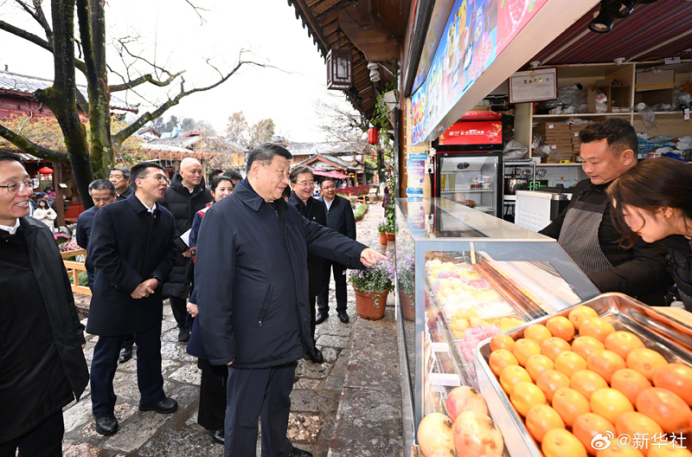 丽江古城有800多年历史,被列入世界文化遗产名录。一场春雪过后,丽江游人如织。习近平来到这里,详细了解古城营建历史、纳西族民居特色和当地文化遗产保护利用、推动文旅融合发展等情况。居民和游客见到总书记十分兴奋,争相问好,有的还弹奏乐器、载歌载舞欢迎总书记。习近平频频与大家互动交流,了解商铺经营状况和游客感受。他要求当地处理好保护和发展的关系,让这座美丽的古城焕发新的光彩。