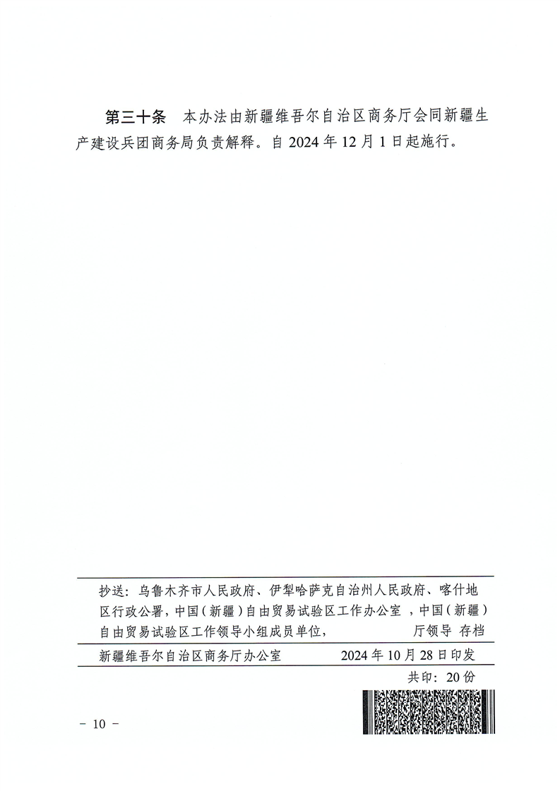 关于印发《中国(新疆)自由贸易试验区外商投资促进办法(试行)》的通知