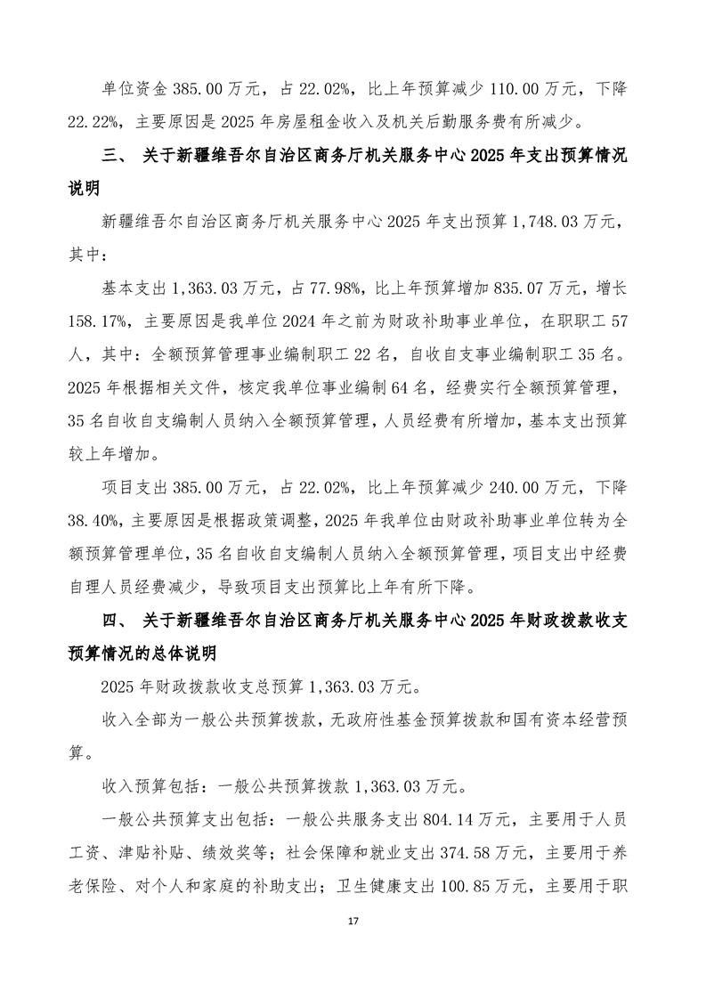 新疆维吾尔自治区商务厅机关服务中心2025年单位预算公开