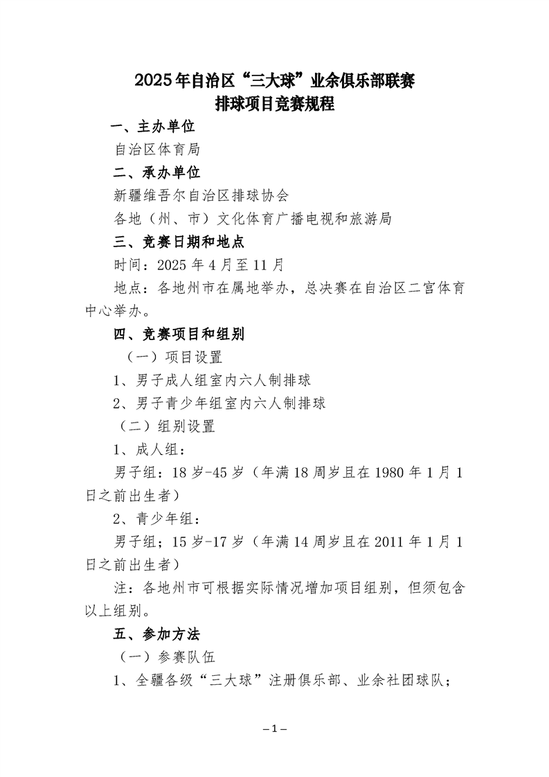 关于举办2025年自治区“三大球”业余俱乐部比赛的通知