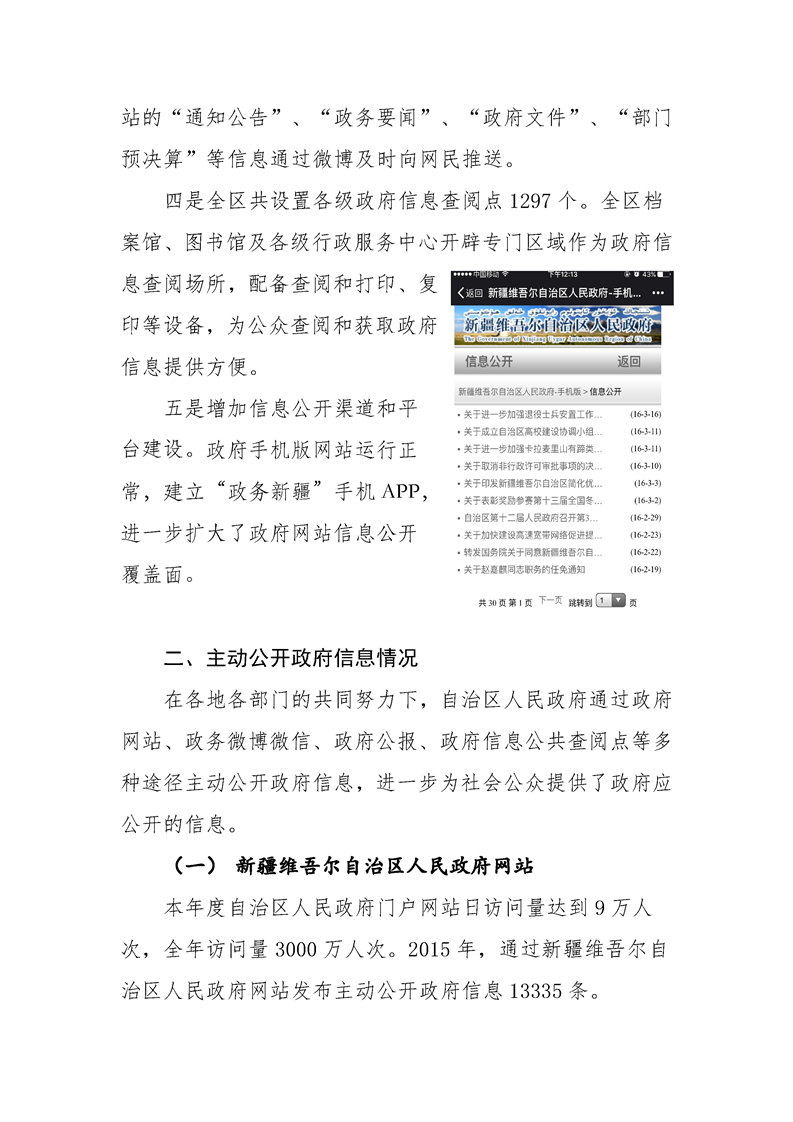 新疆维吾尔自治区人民政府机关2015年度政府信息公开工作报告