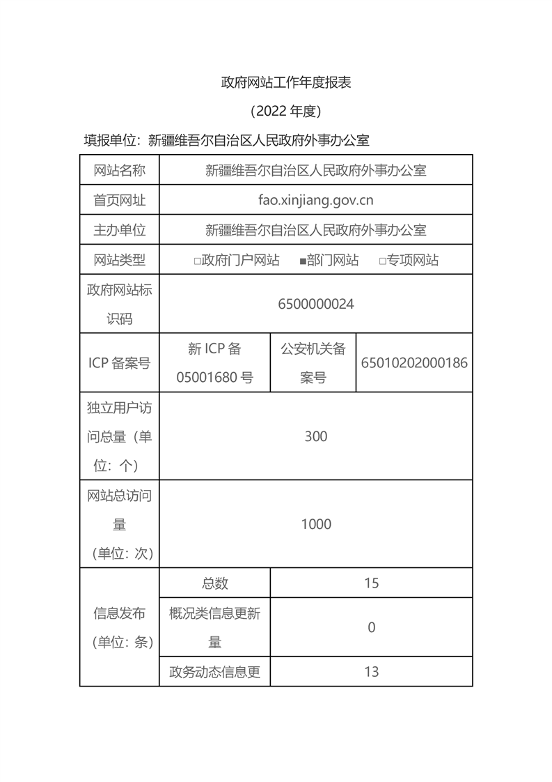 新疆维吾尔自治区政府网站年度报表(2022年)