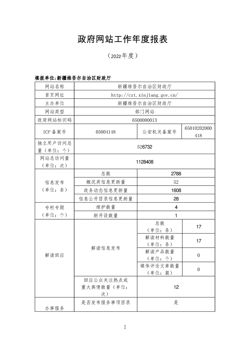 新疆维吾尔自治区政府网站年度报表(2022年)
