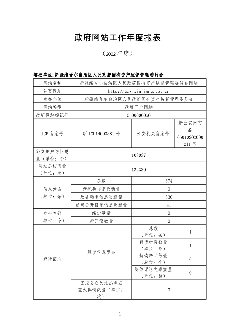 新疆维吾尔自治区政府网站年度报表(2022年)