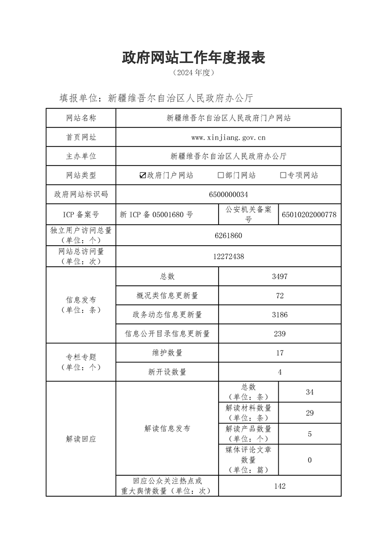 新疆维吾尔自治区政府网站年度报表(2024年)