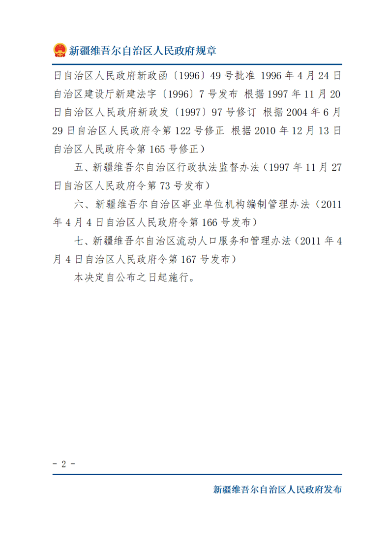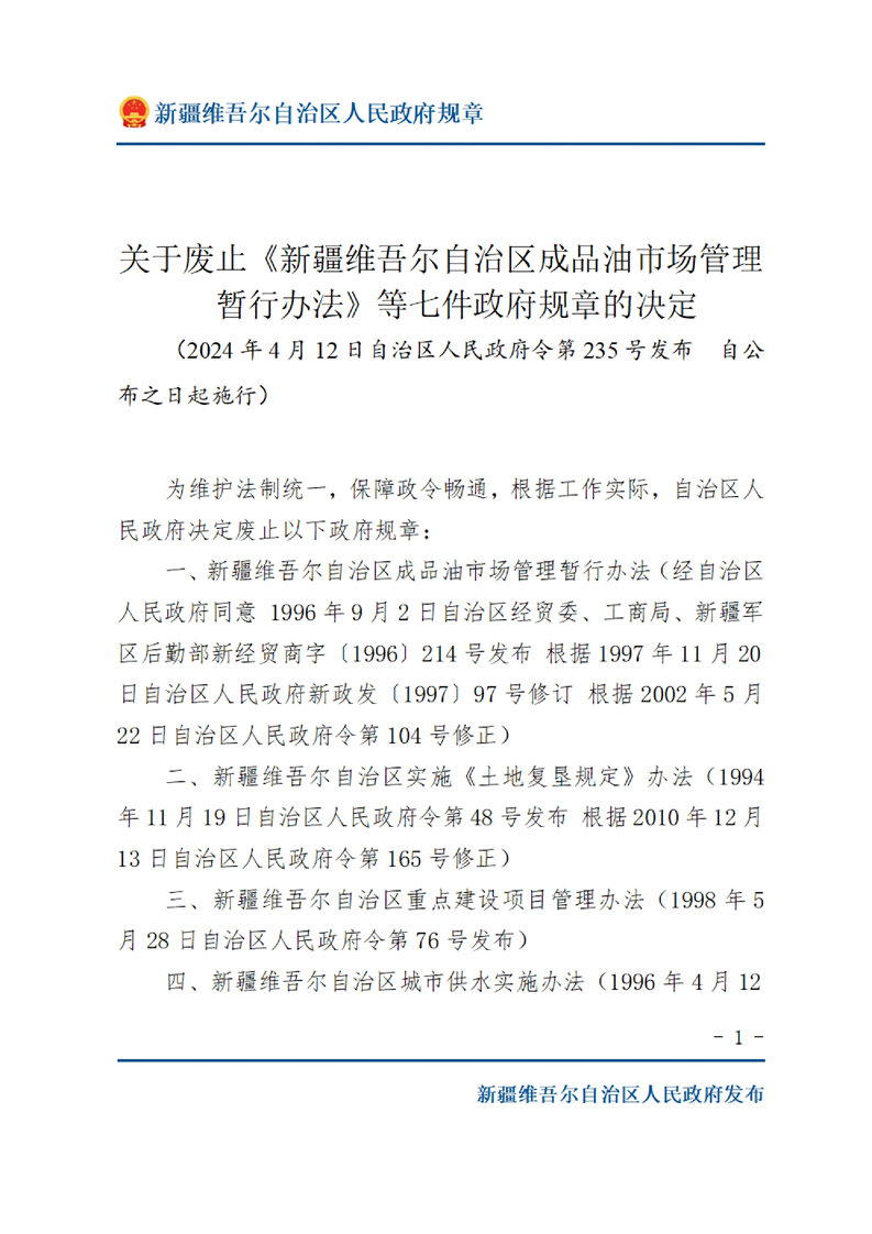 关于废止《新疆维吾尔自治区成品油市场管理暂行办法》等七件政府规章的决定