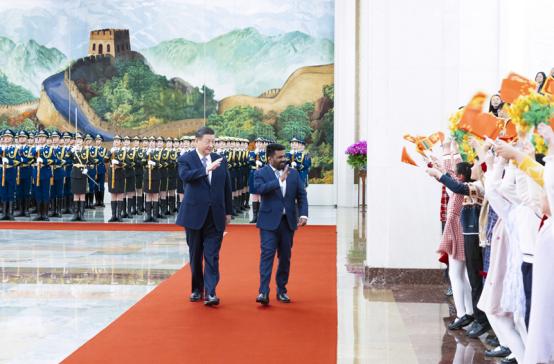 会谈前,习近平在人民大会堂北大厅为迪萨纳亚克举行欢迎仪式。
