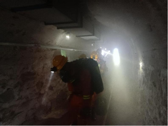 接到监测系统警报,大同队迅速响应,第一时间启动应急救援预案。指战员完成战前检查后,携带8公斤干粉灭火器在零下10℃的训练场进行千米急行军,随后携带救援装备进入演习硐室,按照“有巷必探”的原则,对模拟巷道开展侦查搜救。同时,对巷道内预先设置的4处气体检测点进行瓦斯、一氧化碳等有毒有害气体检测。“发现一名遇险人员!”指战员迅速为被困人员更换2小时正压氧气呼吸器,进行急救包扎后搬运出井。