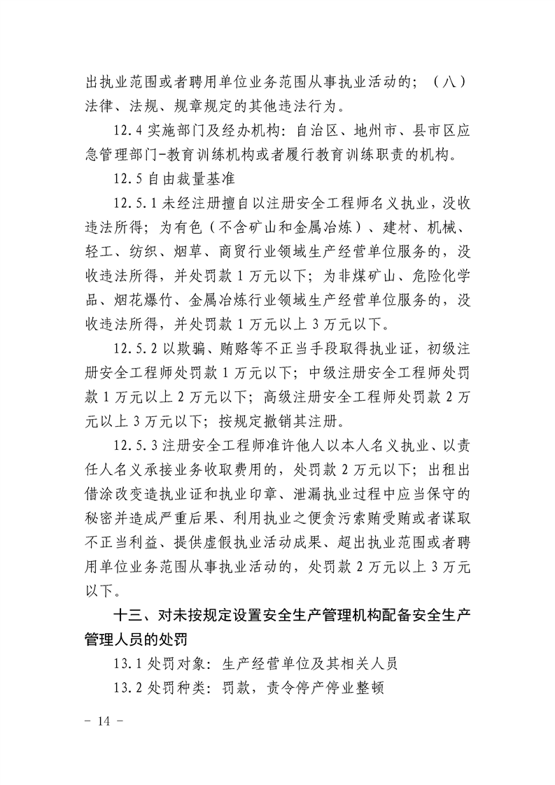 自治区应急管理系统行政处罚自由裁量基准(二)